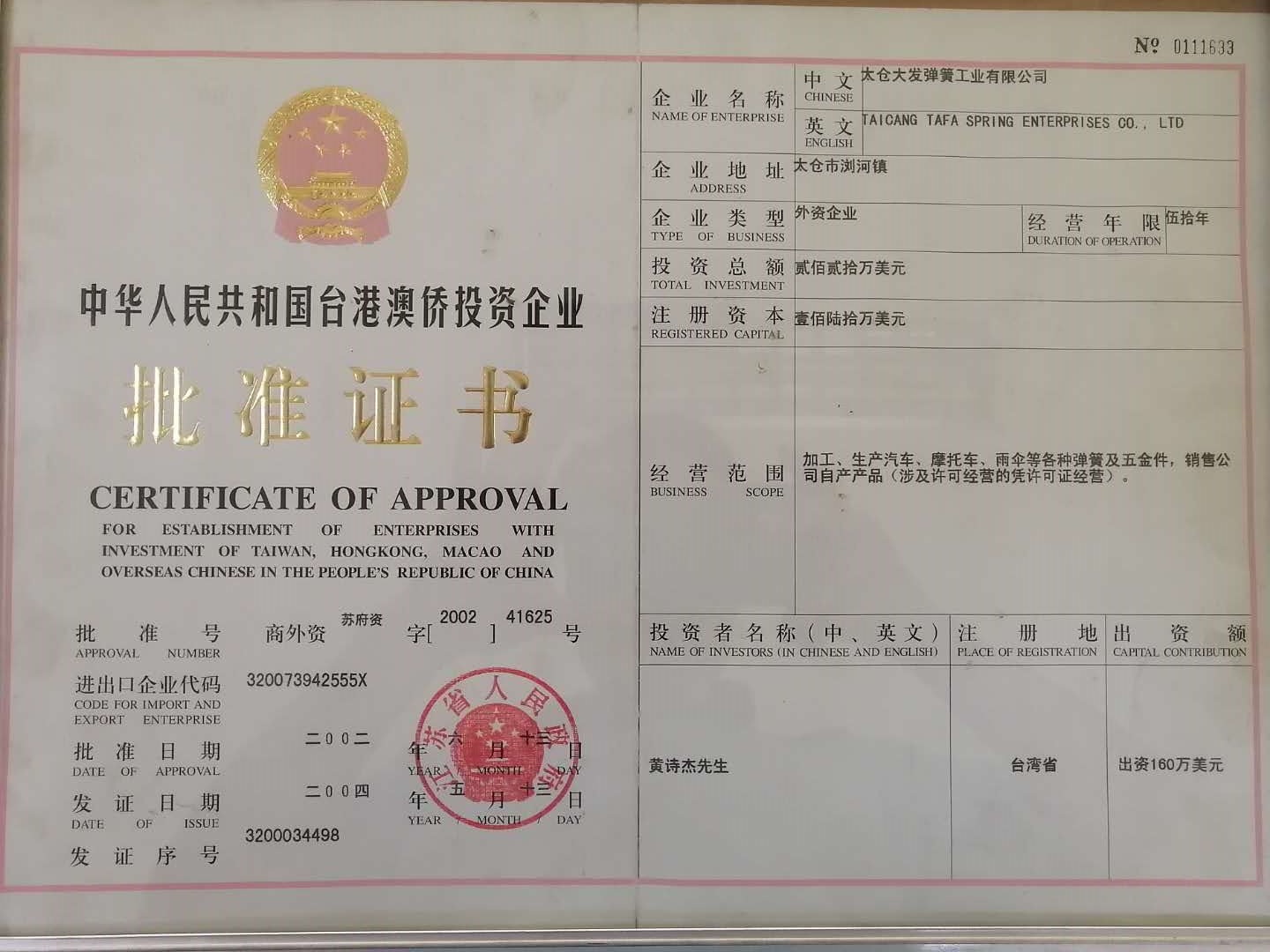 太倉(cāng)大發(fā)彈簧工業(yè)有限公司由黃金樹(shù)先生于1967年始創(chuàng)于臺(tái)灣,是一個(gè)集雨傘、電子、五金機(jī)械、自行車(chē)、摩托車(chē)、汽車(chē)等的彈簧配件生產(chǎn)、加工、輔助設(shè)計(jì)服務(wù)的綜合性企業(yè),其中1990年創(chuàng)辦的廈門(mén)大發(fā)彈簧公司、2000年創(chuàng)辦的深圳大發(fā)彈簧公司、2002年創(chuàng)辦的太倉(cāng)大發(fā)彈簧公司均位于經(jīng)濟(jì)發(fā)展地區(qū),地理位置佳。我們憑借在彈簧制造業(yè)的多年豐富知識(shí)與技術(shù),并著眼于以客戶(hù)為導(dǎo)向,秉持“以人為本,以質(zhì)為先,以客為主,持續(xù)創(chuàng)新”的經(jīng)營(yíng)理念,強(qiáng)化競(jìng)爭(zhēng)優(yōu)勢(shì)。公司導(dǎo)入ISO9001: 2000質(zhì)量管理體系,執(zhí)行ISO14000:2000管理方式,倡導(dǎo)安全、高質(zhì)量、高素質(zhì)的生產(chǎn)。